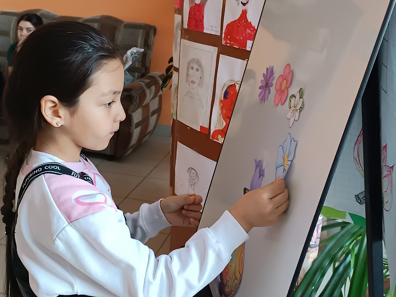 Свои рисунки ребята посвятили самым добрым, красивым, чутким, нежным, трудолюбивым и заботливым мамам. И делая комплимент своей маме, ребята получали цветы, из которых составили пышный красивый букет. Участники вернисажа не только проявили свои художественные способности, но и читали наизусть стихи о маме, за что получили небольшой сладкий приз, которым обязательно поделятся с мамой.