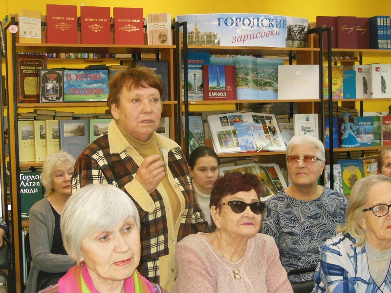 Галина Борисовна – очень добрый, скромный и необычайно талантливый человек. Она является дипломантом краевых, всероссийских литературных конкурсов, удостоена благодарностями администрации Ленинского района г. Барнаула за вклад в развитие литературы, награждена медалями «Максим Горький 155 лет», «Святая Русь», «Александр Пушкин 225 лет», медалью Барнаульской общественной организации ветеранов войны и труда, а в 2025 году её наградили медалью «За содействие СВО». На мероприятии Галина Борисовна представила одиннадцатый сборник стихов «Я жизни говорю СПАСИБО!». В сборник вошли произведения, посвящённые малой и большой Родине, её красотам. Автор размышляет о дружбе, счастье, нравственности, смысле жизни человека и его активной жизненной позиции, а ещё живёт в сердце память о дорогих сердцу людях. Всем понравились стихотворения «Спасибо, Россия», «Другие прудские», «Родные пенаты», «Серебряный ангел», наполненные душевной теплотой, радостью, тревогой и любовью к жизни. Добрый друг Галины Борисовны, автор-исполнитель Дмитрий Ревелев, написал несколько песен на её стихи. В зале прозвучали «Наш Арбат», «Уголок заброшенного сада», «Храни, Господь, Святую Русь», которые с удовольствием подпевали наши гости. Специально для премьеры читательницы библиотеки Светлана Савицкая, Мария Артюхова, Надежда Бахтинова, Людмила Кузнецова, Наталья Жданова и Александр Безруков подготовили и прочли стихотворения из сборника. Со словами поздравления выступили председатель Совета ветеранов педагогического труда Надежда Дегтярёва, коллектив волонтеров «Серебряные ангелы» Октябрьского района. В завершение мероприятия присутствующие поблагодарили Галину Борисовну за такое теплое, душевное общение и любовь к поэзии.