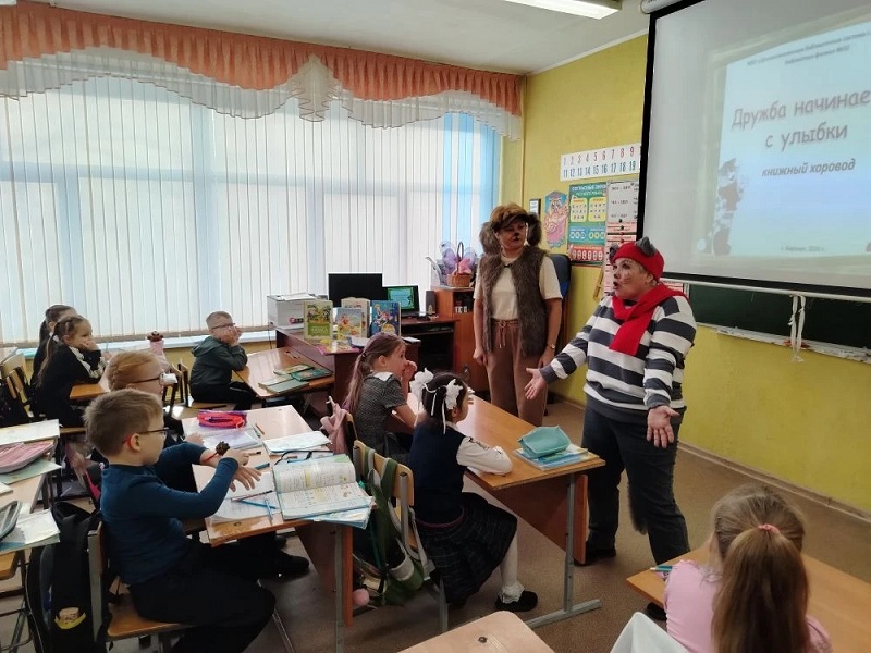 17 марта сотрудники библиотеки № 32 провели для первоклассников МБОУ «СОШ № 102» книжный хоровод «Дружба начинается с улыбки».