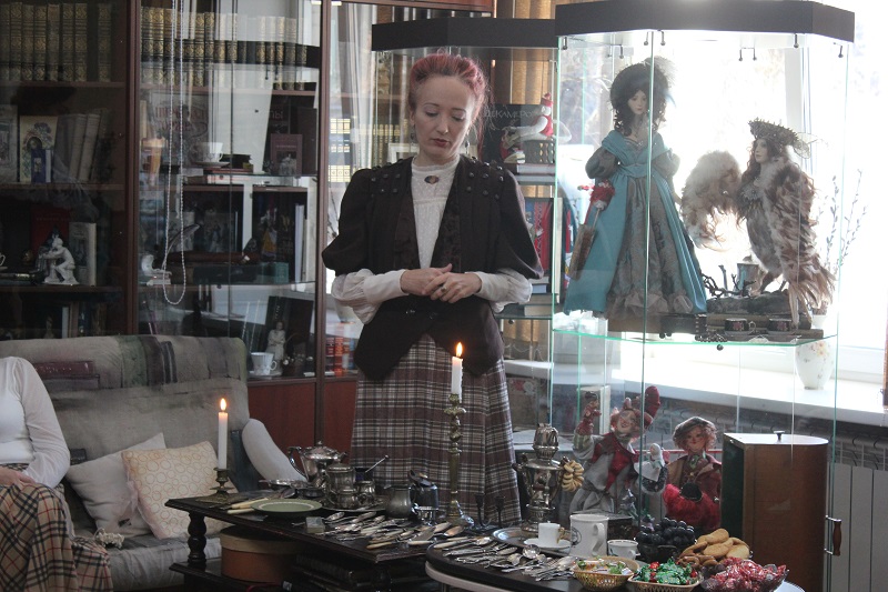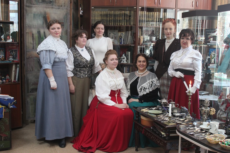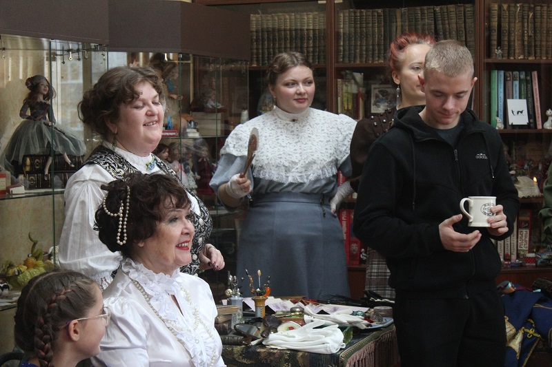 Гостям музея участники студии показали коллекционные предметы костюма, туалета и быта 19-го столетия и провели викторину по определению назначения каждого из них. Этикет сервировки стола, столовые приборы и их использование стали своеобразной захватывающей хроникой частной жизни русского аристократа.